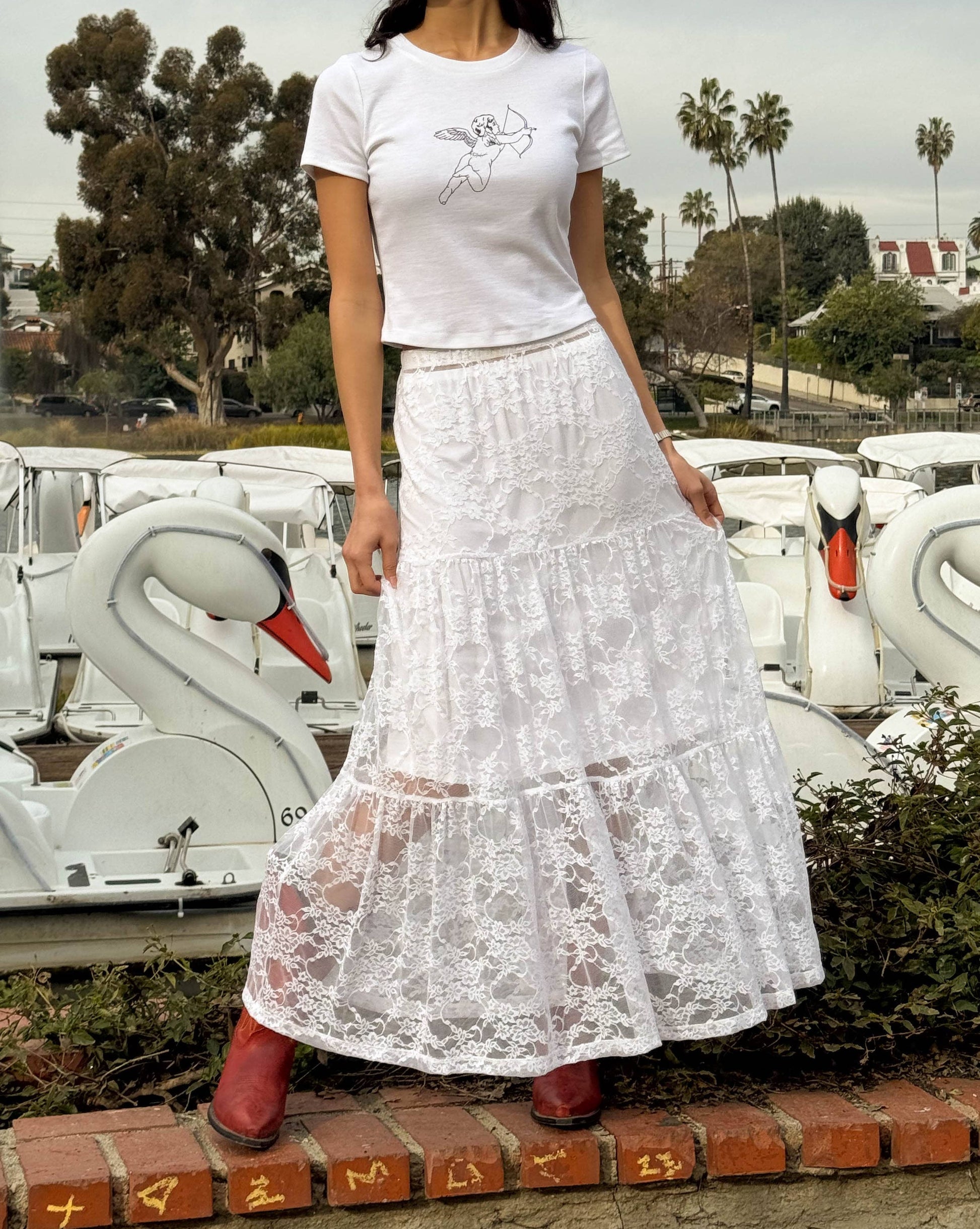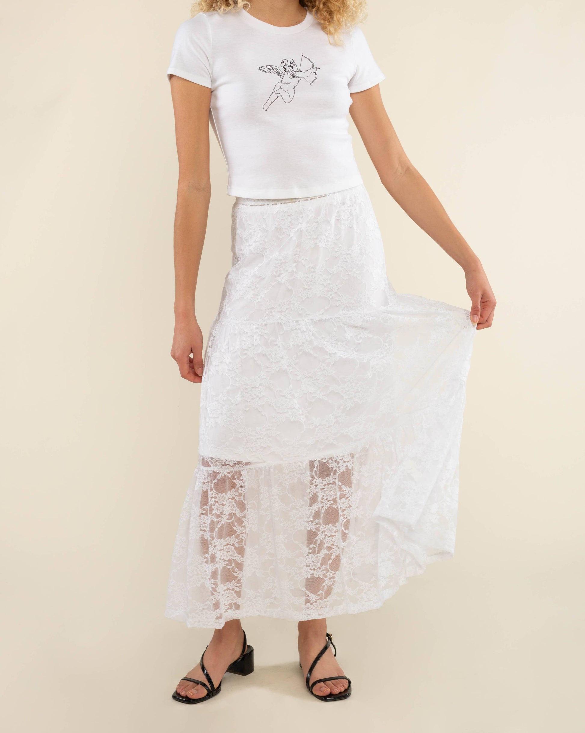 1x1 cotton rib cropped length baby tee with a cupid DTG print