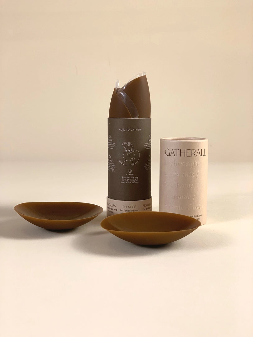 Ultra-thin silicone adhesive nipple covers with smooth velvet finishing and tapered edge technology to stay flush to your skin and seamless under your clothes. Gatherall Nipple covers are 100% opaque to provide discrete, no-show coverage. Waterproof and sweatproof, they are a great solution for replacing the linings of bathing suits, sports bras, and activewear. Comfort and freedom without straps, hooks, or wires. Perfect for when you don't need that extra support. Crafted with dermatologist tested, skin-friendly, non-toxic adhesive. Final Sale item, no returns or exchanges.